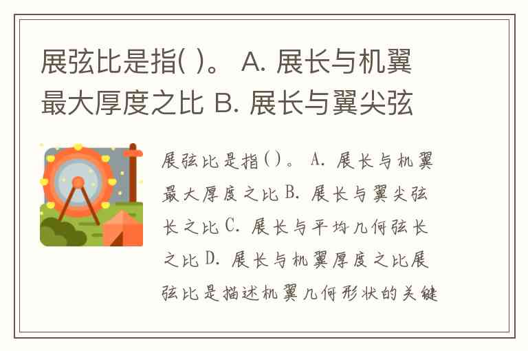 展弦比是指( )。 A. 展长与机翼最大厚度之比 B. 展长与翼尖弦长之比 C. 展长与平均几何弦长之比 D. 展长与机翼厚度之比