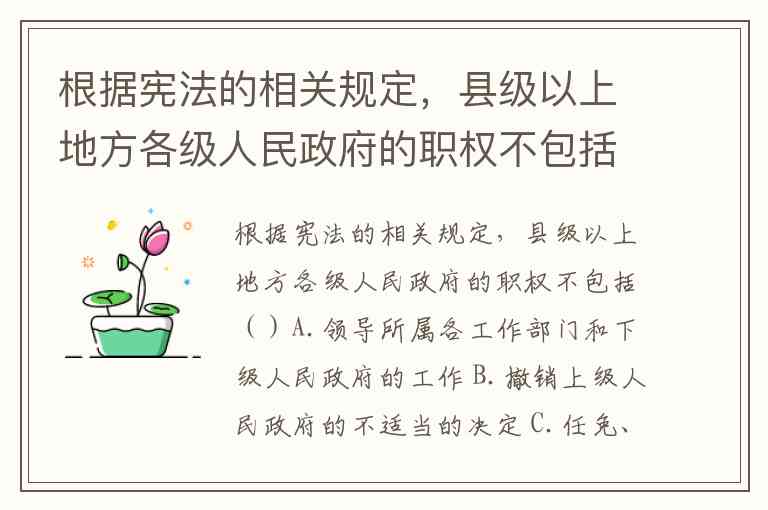 根据宪法的相关规定,县级以上地方各级人民政府的职权不包括()A.领导所属各工作部门和下级人民政府的工作 B.撤销上级人民政府的不适当的决定 C.任免、培训、考核和奖惩行政工作人员