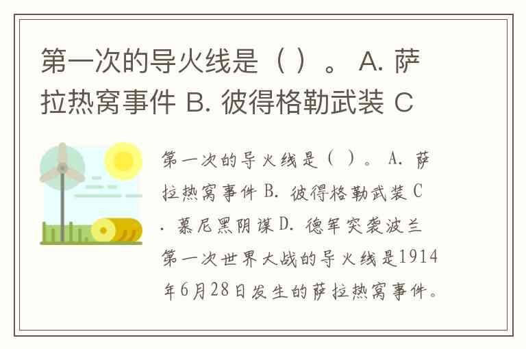 第一次的导火线是( )。 A. 萨拉热窝事件 B. 彼得格勒武装 C. 慕尼黑阴谋 D. 德军突袭波兰