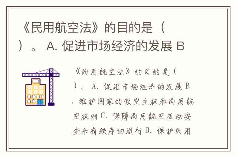 需要特别说明的是,选项A"促进市场经济的发展"并非该法直接目的。虽然民航业发展客观上服务于市场经济,但法律文本始终聚焦航空领域自身的主权维护、安全保障、权益保护与产业发展四重目标,未将市场经济作为独立立法目的表述。这种立法定位体现了行业法与经济法的功能区分。