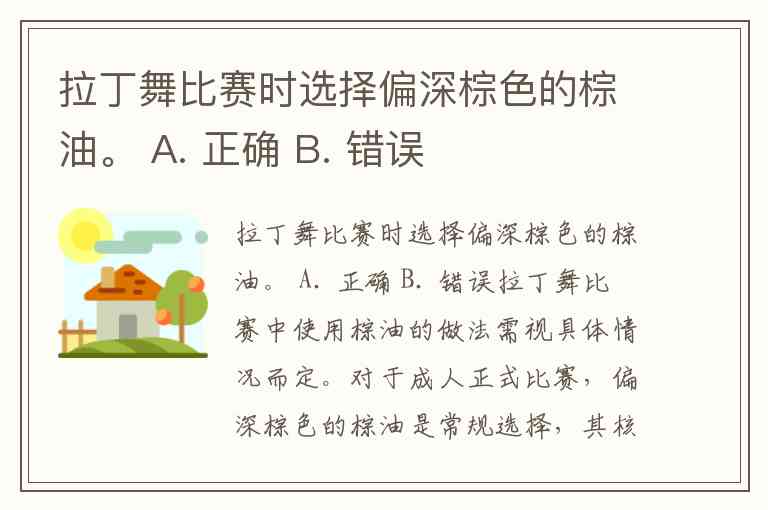 拉丁舞比赛时选择偏深棕色的棕油。 A. 正确 B. 错误
