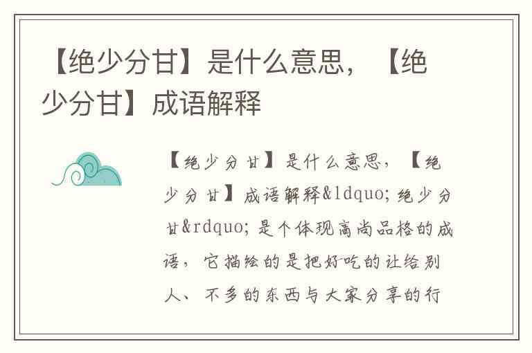 【绝少分甘】是什么意思,【绝少分甘】成语解释