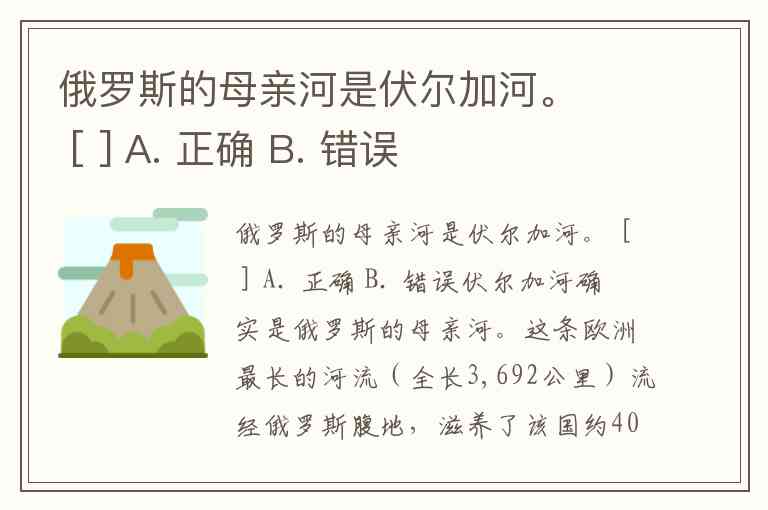 俄罗斯的母亲河是伏尔加河。 [ ] A. 正确 B. 错误