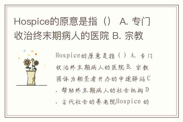 Hospice的原意是指() A. 专门收治终末期病人的医院 B. 宗教团体为朝圣者开办的中途驿站 C. 帮助终末期病人的社会机构 D. 古代社会的养老院