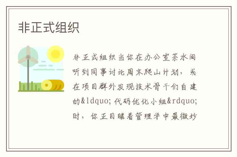 当你在办公室茶水间听到同事讨论周末爬山计划,或在项目群外发现技术骨干们自建的“代码优化小组”时,你正目睹着管理学中最微妙的组织现象——非正式组织。这种由共同兴趣、情感纽带或利益需求自发形成的团体,如同正式组织结构下的“神经网络”,既可能成为团队凝聚力的催化剂,也可能演变为制度执行的阻力。哈佛大学梅奥教授通过霍桑实验首次发现,员工在流水线上的社交互动、午餐桌上的话题联盟,这些看似无关紧要的人际联结,对生产效率的影响远超规章制度的约束。
