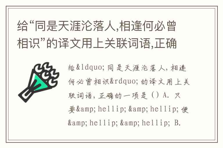 给“同是天涯沦落人,相逢何必曾相识”的译文用上关联词语,正确的一项是 ( ) A. 只要……便…… B. 既然……那么…… C. 尽管……也…… D. 假若……那么……