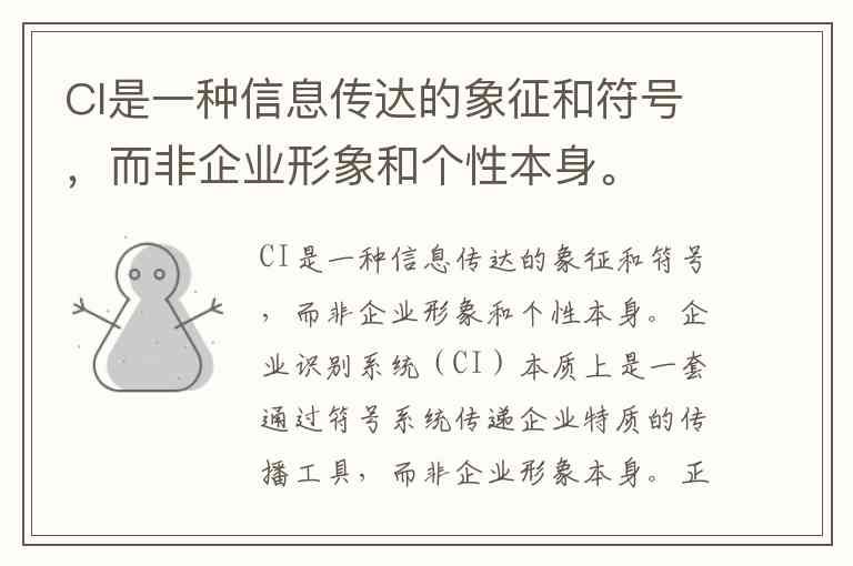 CI是一种信息传达的象征和符号,而非企业形象和个性本身。
