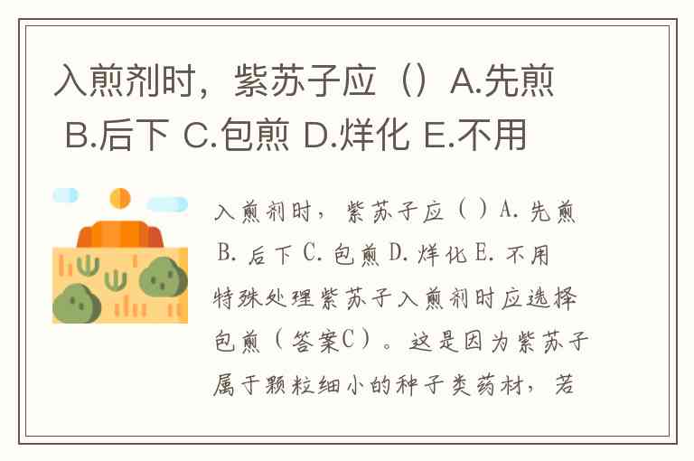 需要注意的是,紫苏的不同药用部位煎法存在差异。紫苏叶、紫苏梗等地上部分因含挥发油,需采用后下(煎好前5-10分钟放入)以保留药效,而紫苏子作为种子类药材,则因物理特性需要包煎。这种差异体现了中医“用药部位不同,炮制煎煮各异”的用药智慧。
