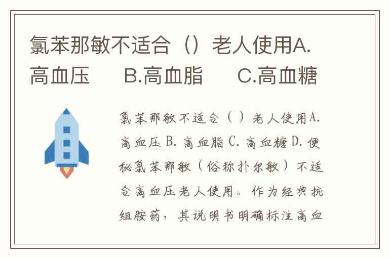 氯苯那敏不适合()老人使用A.高血压 B.高血脂 C.高血糖 D.便秘