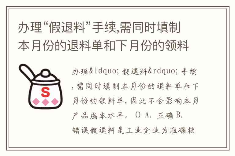 办理“假退料”手续,需同时填制本月份的退料单和下月份的领料单,因此不会影响本月产品成本水平。() A. 正确 B. 错误