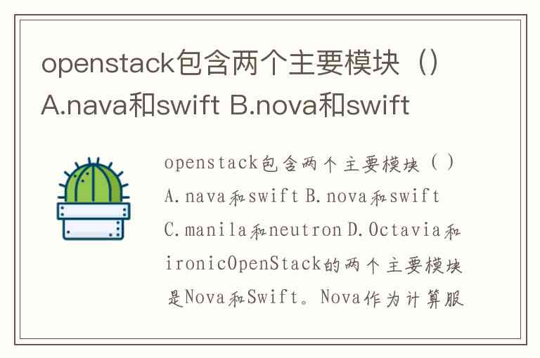openstack包含两个主要模块()A.nava和swift B.nova和swift C.manila和neutron D.Octavia和ironic