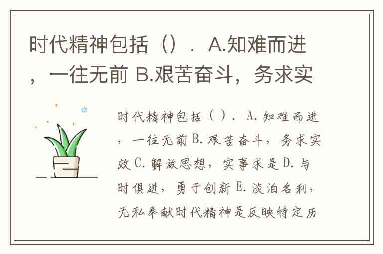 时代精神包括().A.知难而进,一往无前 B.艰苦奋斗,务求实效 C.解放思想,实事求是 D.与时俱进,勇于创新 E.淡泊名利,无私奉献