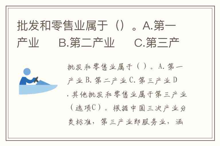 批发和零售业属于()。A.第一产业 B.第二产业 C.第三产业 D.其他