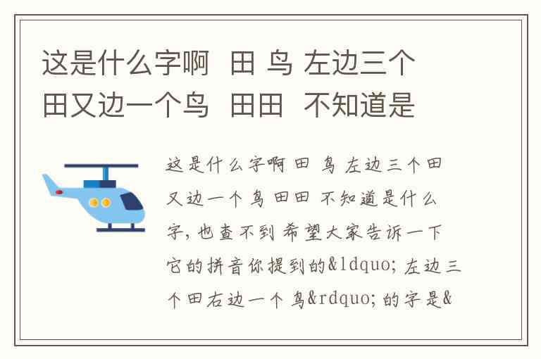 这是什么字啊 田 鸟 左边三个田又边一个鸟 田田 不知道是什么字,也查不到 希望大家告诉一下它的拼音