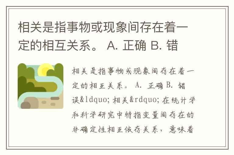 相关是指事物或现象间存在着一定的相互关系。 A. 正确 B. 错误
