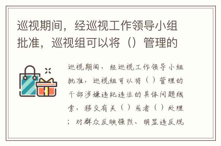 巡视期间,经巡视工作领导小组批准,巡视组可以将()管理的干部涉嫌违纪违法的具体问题线索,移交有关()或者()处理;对群众反映强烈、明显违反规定并且能够及时解决的问题,向被巡视党组织提出处理建议。()A.上级党委 B.被巡视党组织 C.纪律检查机关 D.政法机关