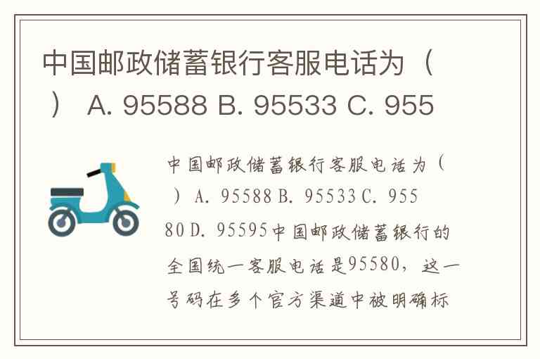 中国邮政储蓄银行客服电话为( ) A. 95588 B. 95533 C. 95580 D. 95595