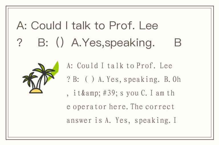 A: Could I talk to Prof. Lee? B:()A.Yes,speaking. B.Oh, it's you C.I am the operator here.