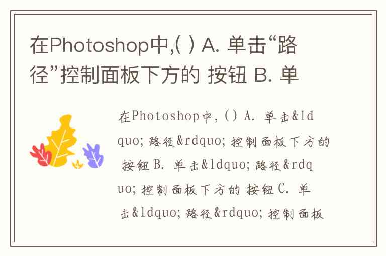 在Photoshop中,( ) A. 单击“路径”控制面板下方的 按钮 B. 单击“路径”控制面板下方的 按钮 C. 单击“路径”控制面板下方的 按钮 D. 单击“路径”控制面板下方的 按钮 E.