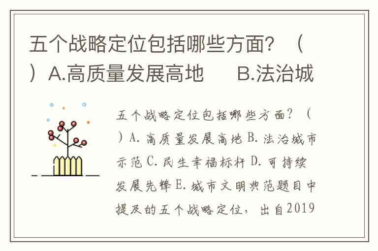 五个战略定位包括哪些方面?()A.高质量发展高地 B.法治城市示范 C.民生幸福标杆 D.可持续发展先锋 E.城市文明典范