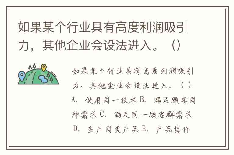 如果某个行业具有高度利润吸引力,其他企业会设法进入。()A.使用同一技术 B.满足顾客同种需求 C.满足同一顾客群需求 D.生产同类产品 E.产品售价相同
