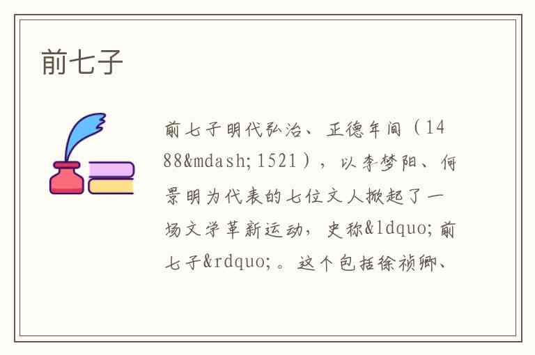 明代弘治、正德年间(1488—1521),以李梦阳、何景明为代表的七位文人掀起了一场文学革新运动,史称“前七子”。这个包括徐祯卿、边贡、康海、王九思和王廷相在内的文学团体,以“文必秦汉,诗必盛唐”为旗帜,尖锐批判当时僵化空洞的台阁体和八股文风,试图通过复古实现文学的重生。他们的出现犹如在死水一潭的明代文坛投下巨石,引发了持续一个世纪的复古思潮,直至被后来的公安派“独抒性灵”的主张所替代。