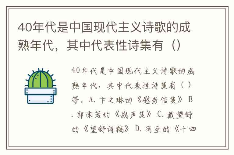 正确答案为:A.卞之琳的《慰劳信集》;D.冯至的《十四行集》。当现代主义诗歌在战争阴影下转向对存在本质的追问时,这两部作品以截然不同的路径——前者从战地经验中萃取象征,后者在自然与苦难中沉思永恒——共同铸就了中国诗歌现代性探索的里程碑。