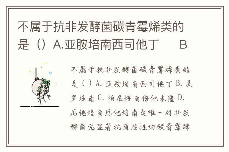 不属于抗非发酵菌碳青霉烯类的是()A.亚胺培南西司他丁 B.美罗培南 C.帕尼培南倍他米隆 D.厄他培南