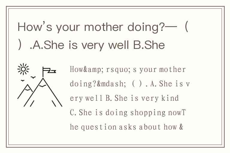 How’s your mother doing?—().A.She is very well B.She is very kind C.She is doing shopping now