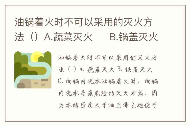 油锅着火时不可以采用的灭火方法()A.蔬菜灭火 B.锅盖灭火 C.向锅内浇水