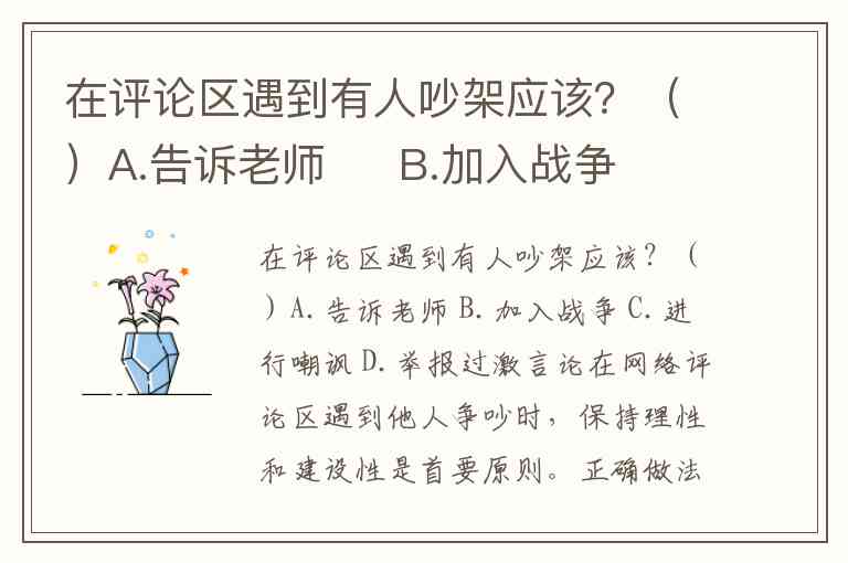 在评论区遇到有人吵架应该?()A.告诉老师 B.加入战争 C.进行嘲讽 D.举报过激言论