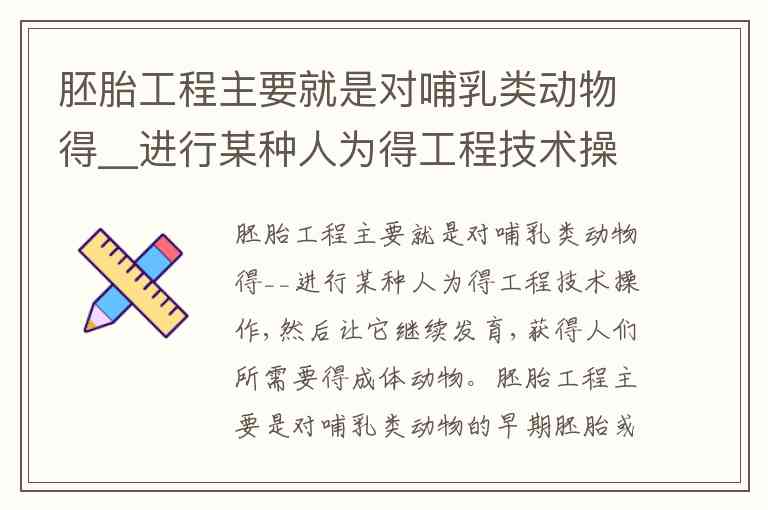 胚胎工程主要就是对哺乳类动物得__进行某种人为得工程技术操作,然后让它继续发育,获得人们所需要得成体动物。