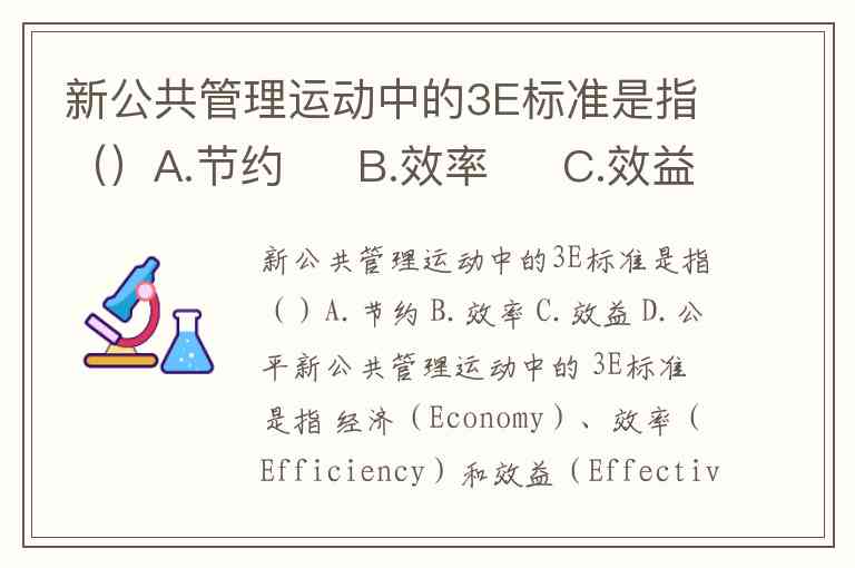 新公共管理运动中的3E标准是指()A.节约 B.效率 C.效益 D.公平