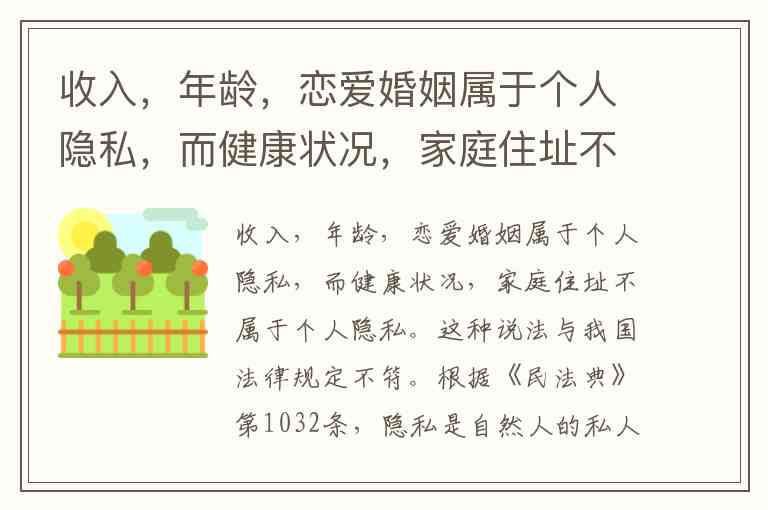 这种说法与我国法律规定不符。根据《民法典》第1032条,隐私是自然人的私人生活安宁和不愿为他人知晓的私密空间、私密活动、私密信息。无论是收入、年龄、恋爱婚姻状况,还是健康状况、家庭住址,只要是个人不愿公开的信息,都可能构成隐私。