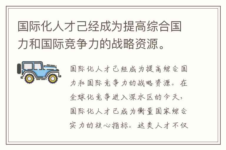 国际化人才己经成为提高综合国力和国际竞争力的战略资源。