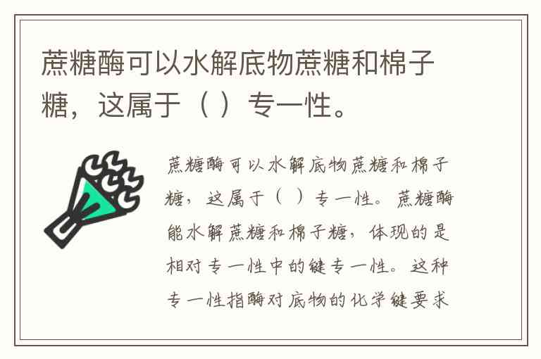 蔗糖酶能水解蔗糖和棉子糖,体现的是相对专一性中的键专一性。这种专一性指酶对底物的化学键要求严格,而对键两端的基团无严格限制。