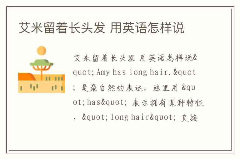 如果想强调发型状态,也可以说 "Amy wears her hair long",但这种表达更侧重于发型的打理方式,不如 "has long hair" 普遍。在大多数情况下,"Amy has long hair" 是最直接、最准确的翻译。