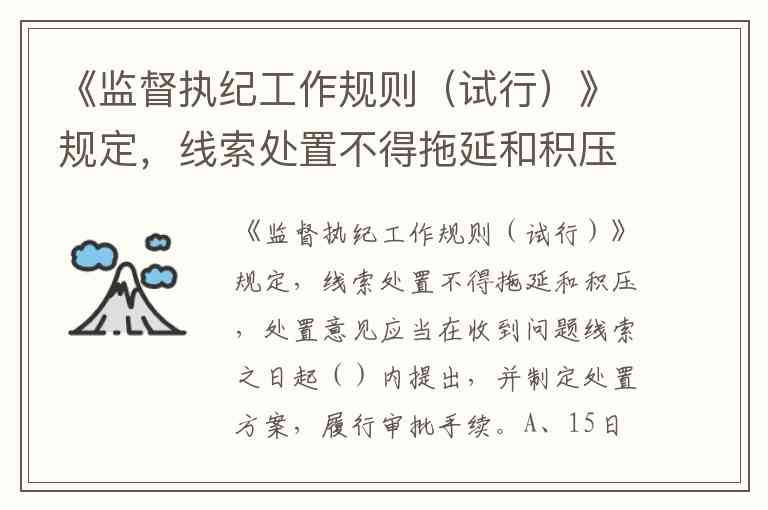需要注意的是,选项中的"30日"与文档中"1个月内"属于同义表述,均为规则规定的法定处置时限。这一期限设置既保障了线索处置的及时性,也为纪检监察机关预留了必要的研判时间,确保处置意见的准确性和规范性。