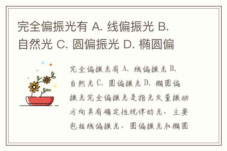 完全偏振光有 A. 线偏振光 B. 自然光 C. 圆偏振光 D. 椭圆偏振光