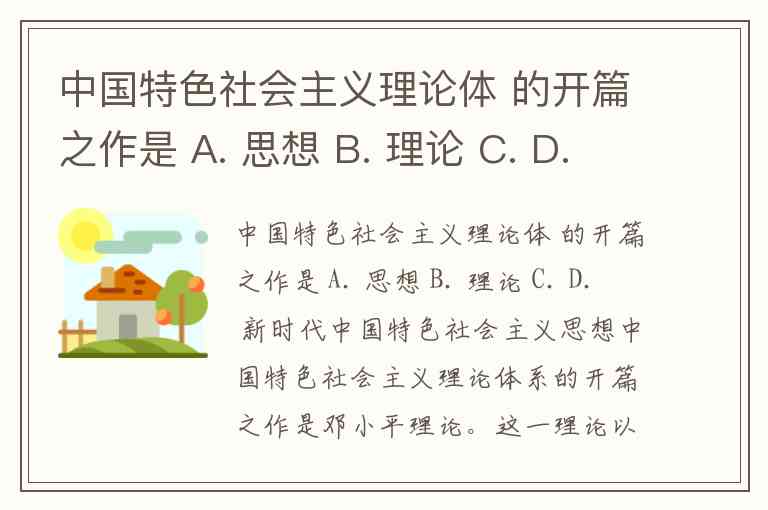 中国特色社会主义理论体 的开篇之作是 A. 思想 B. 理论 C. D. 新时代中国特色社会主义思想