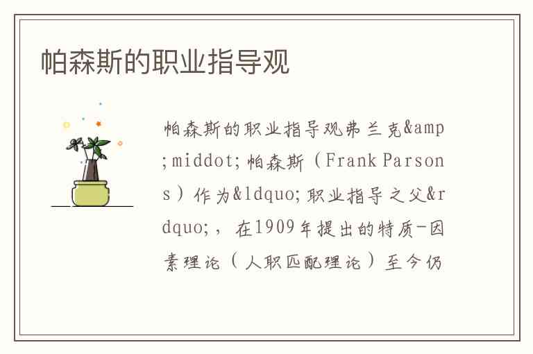 帕森斯的理论如同职业规划的“罗盘”,虽未能涵盖所有变量,却为迷茫者提供了系统化的导航框架。在今天职业流动性增强的时代,或许我们更需要在其“科学匹配”原则基础上,加入“终身学习”的动态视角——毕竟,最好的匹配不是一次性选择,而是持续调整的过程。