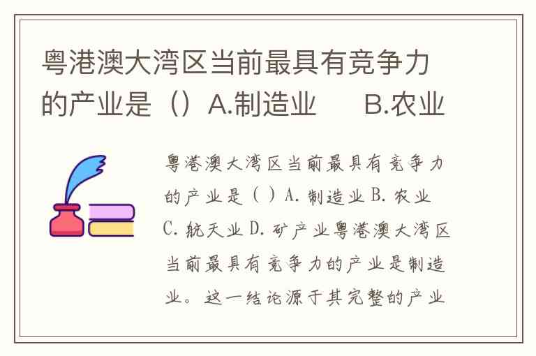 粤港澳大湾区当前最具有竞争力的产业是()A.制造业 B.农业 C.航天业 D.矿产业