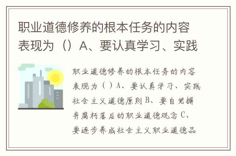 职业道德修养的根本任务的内容表现为()A、要认真学习、实践社会主义道德原则 B、要自觉摒弃腐朽落后的职业道德观念 C、要逐步养成社会主义职业道德品质 D、要坚定全心全意为人民服务的观念