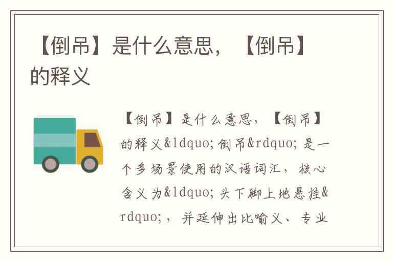 “倒吊”是一个多场景使用的汉语词汇,核心含义为“头下脚上地悬挂”,并延伸出比喻义、专业术语等多重用法。