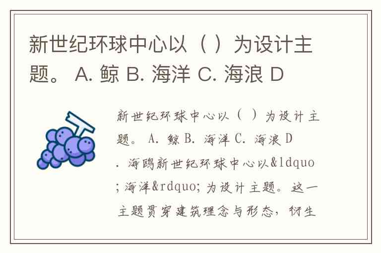 新世纪环球中心以( )为设计主题。 A. 鲸 B. 海洋 C. 海浪 D. 海鸥