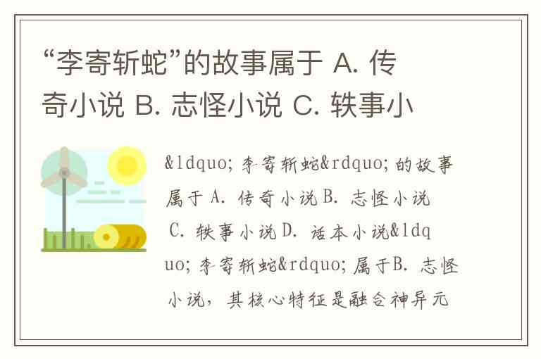“李寄斩蛇”的故事属于 A. 传奇小说 B. 志怪小说 C. 轶事小说 D. 话本小说