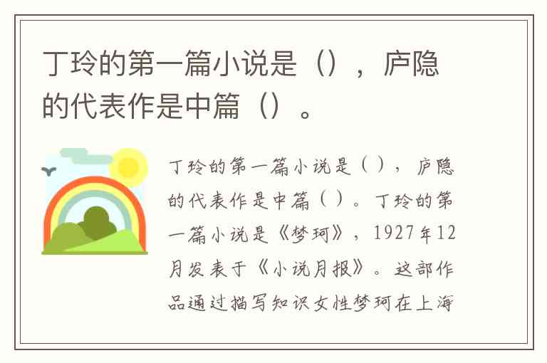 丁玲的第一篇小说是(),庐隐的代表作是中篇()。