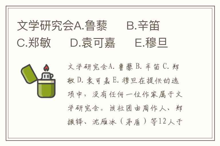 在提供的选项中,没有任何一位作家属于文学研究会。该社团由周作人、郑振铎、沈雁冰(茅盾)等12人于1921年发起,核心成员包括叶绍钧(叶圣陶)、许地山、王统照等,并陆续吸纳了冰心、朱自清、老舍等170余人。其宗旨是“研究介绍世界文学,整理中国旧文学,创造新文学”,以现实主义创作风格著称。