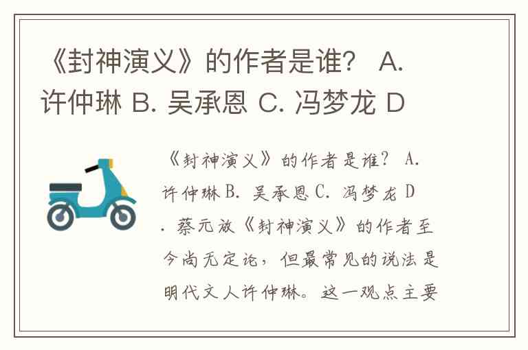 《封神演义》的作者是谁? A. 许仲琳 B. 吴承恩 C. 冯梦龙 D. 蔡元放