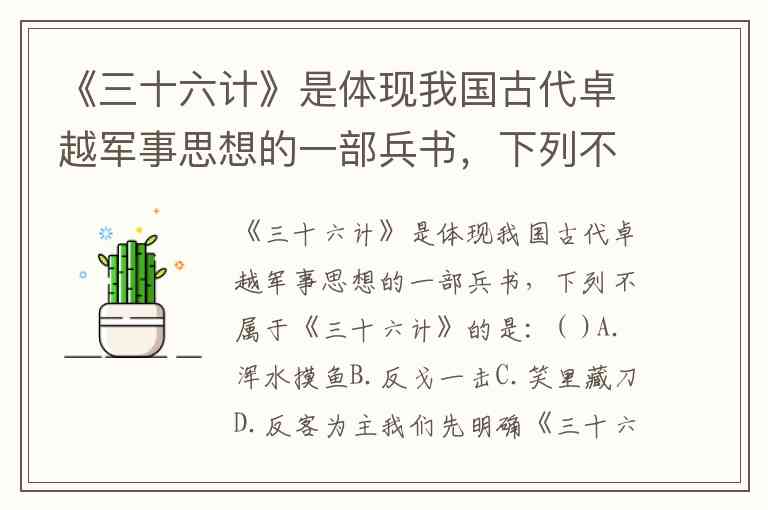 《三十六计》是体现我国古代卓越军事思想的一部兵书,下列不属于《三十六计》的是:( )